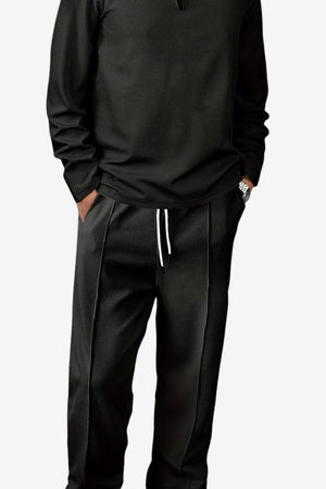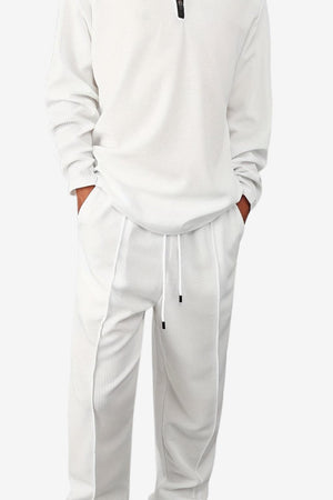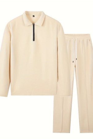 Men's Beige 2-Piece Knit Set - Long-Sleeve Sweater & Drawstring Trousers