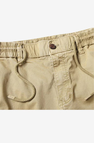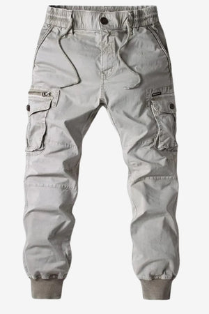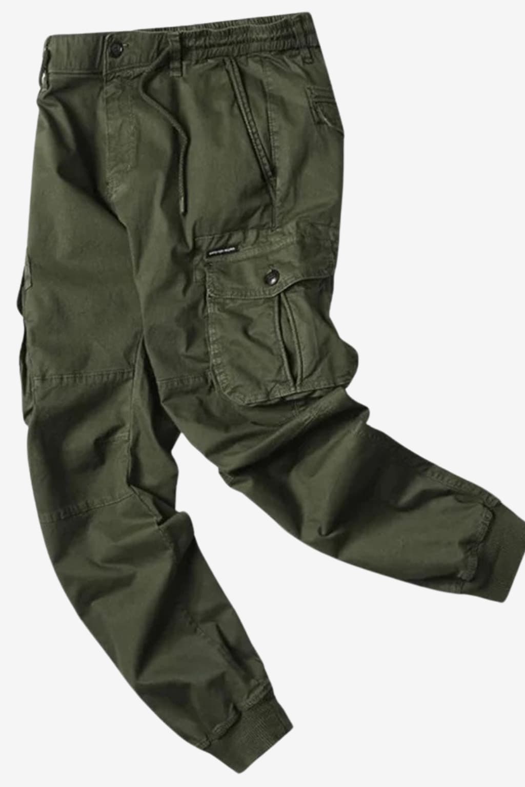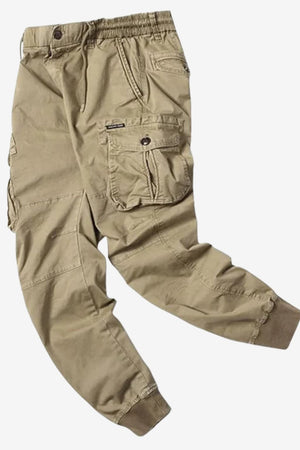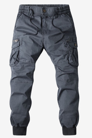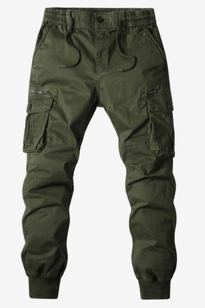 Men's Cargo Jogger Pants feature a military-inspired design with a relaxed, tapered fit. Crafted with a smooth texture, they include an elastic waistband, multiple pockets, and elasticized cuffs, suitable for men needing functionality for casual or outdoor activities.- Adjustable Fit: Elastic waistband with drawstring allows a personalized fit.