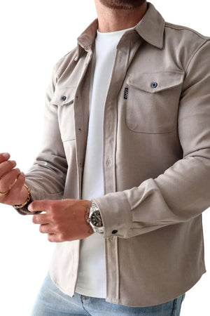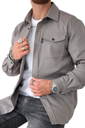 Long Sleeve Button-Up Shirt with Neutral Form and Layered Utility
