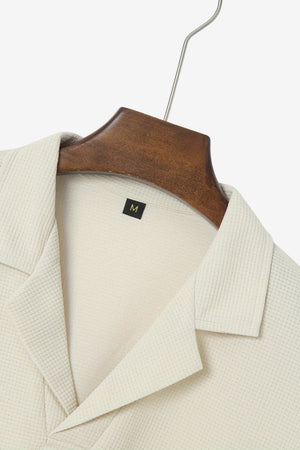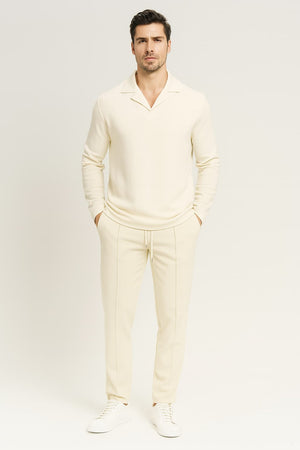 The Men's Check Long-Sleeve Shirt & Trousers Set is a coordinated two-piece outfit featuring a shawl collar shirt and matching straight-leg trousers. Made with a smooth, lightweight fabric and a subtle check pattern, it provides a refined look for casual or semi-formal occasions. Ideal for men seeking versatile wardrobe options.- Slim to Regular Fit: Shirt and trousers suit various body types with tailored shape.