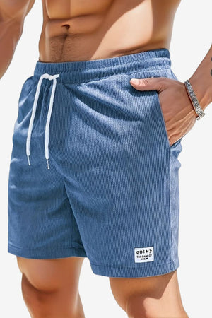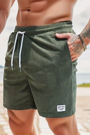 Men's Corduroy Casual Shorts - Elastic Waist, Side Pockets