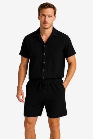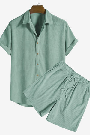 Men's Corduroy Short-Sleeve Shirt & Shorts Set - Relaxed Fit