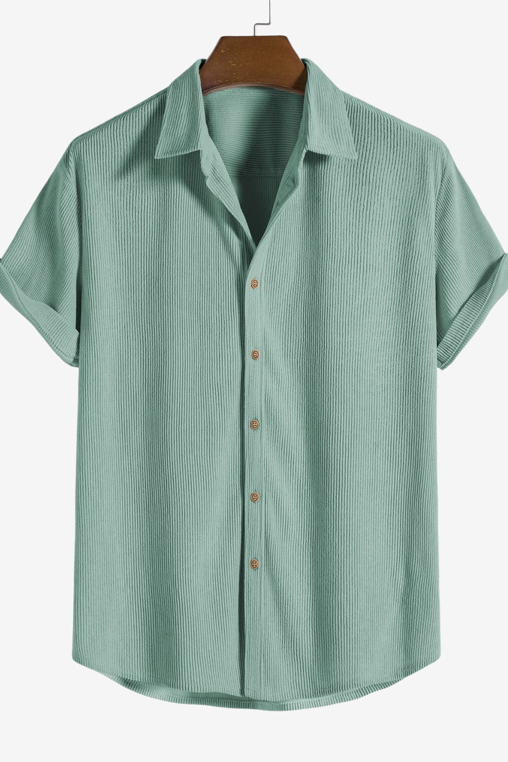 This Men's Short-Sleeve Shirt & Shorts Set is a coordinated two-piece outfit designed for warm-weather wear. Its loose fit and adjustable features suit various body types, making it a practical choice for casual outings or relaxed vacation settings with a cohesive mint green appearance.- Loose Silhouette: Relaxed fit accommodates diverse body shapes for ease.