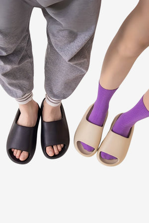 Men's EVA Open-Toe Bathroom Slides are lightweight sandals with a minimalist design. Made from smooth, water-resistant material, they suit indoor or outdoor use, particularly in wet environments like bathrooms or poolside areas. The slides offer a practical fit for various foot shapes, ideal for daily wear in casual or moist settings.- Adjustable Fit: Slip-on, open-toe style accommodates different foot shapes.