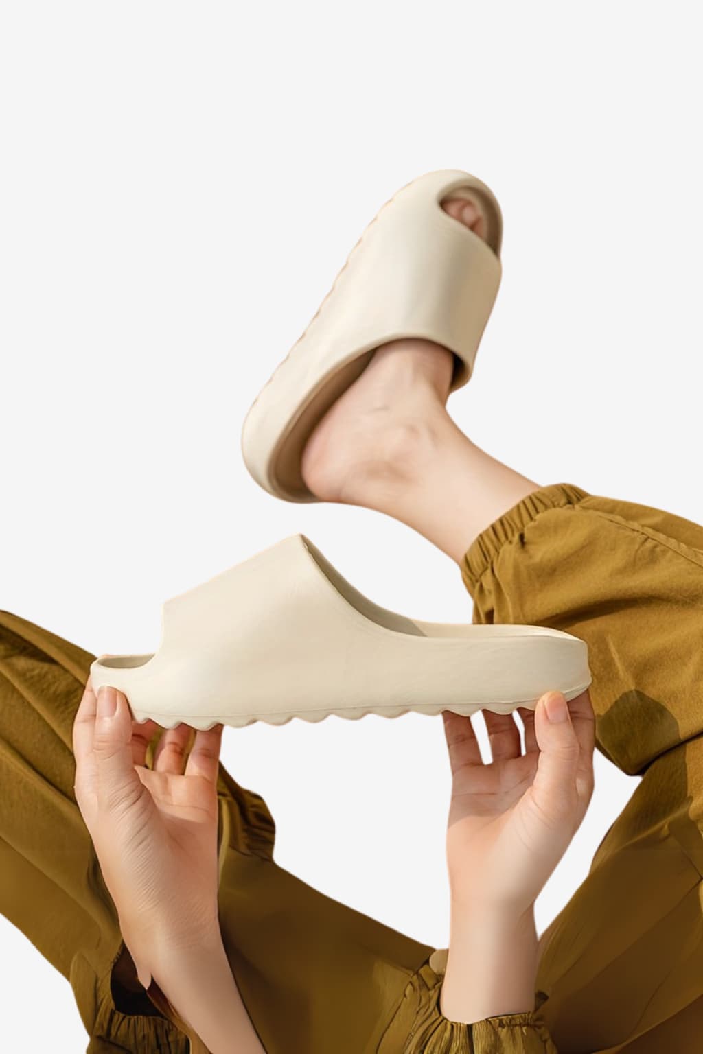- Textured Sole: Thick base with patterned grip for wet surfaces.