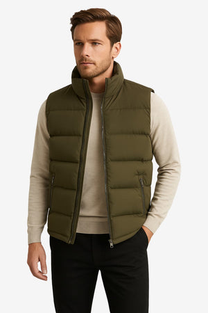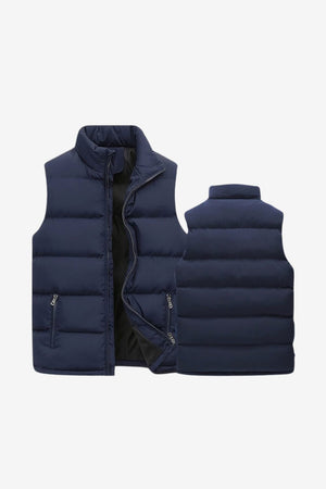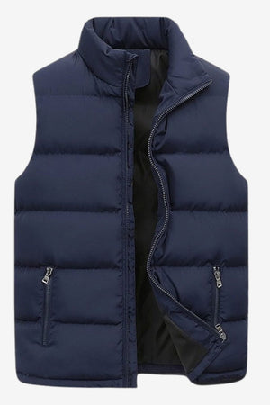 This Men's Insulated Sleeveless Puffer Vest is a lightweight, waist-length garment with a quilted structure. Its warm, plush lining and smooth outer shell make it a practical layering piece for casual or outdoor settings in cooler seasons.- Regular Fit: Tailored silhouette fits comfortably over shirts or sweaters.
