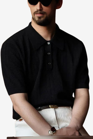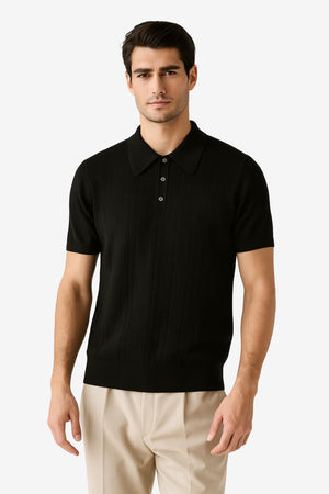 Men’s Knitted Polo Shirt Short Sleeve Textured Fit