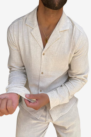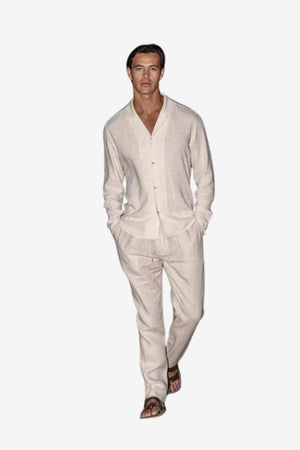Men's Linen Long - Sleeve Shirt & Trousers Set Relaxed Fit