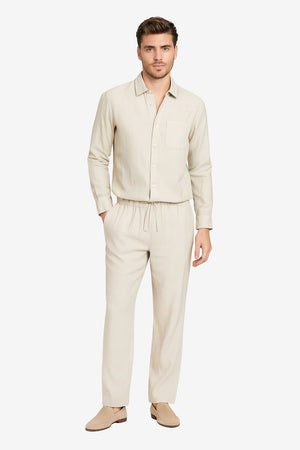 Men’s Linen Look Shirt and Trousers Set Casual Fit