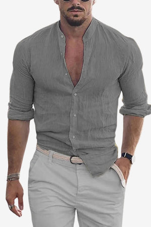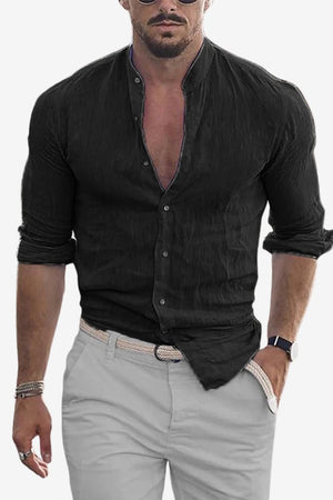 Men’s Linen Shirt Long Sleeve Slim Fit Mandarin Collar