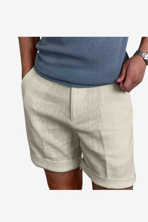 Men's Linen Shorts Relaxed Fit Mid-Thigh Cuffed Hem Casual