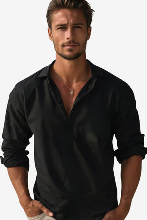 The Men's Long Sleeve Classic Shirt features a modern-fit design with a relaxed, casual style. Its lightweight, smooth-textured fabric and adaptable fit suit men for various occasions, from professional settings to casual outings, ensuring a balanced and versatile wardrobe option.- Modern Fit: Regular to slightly loose fit with a cinched silhouette for diverse body types.