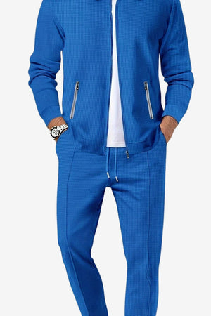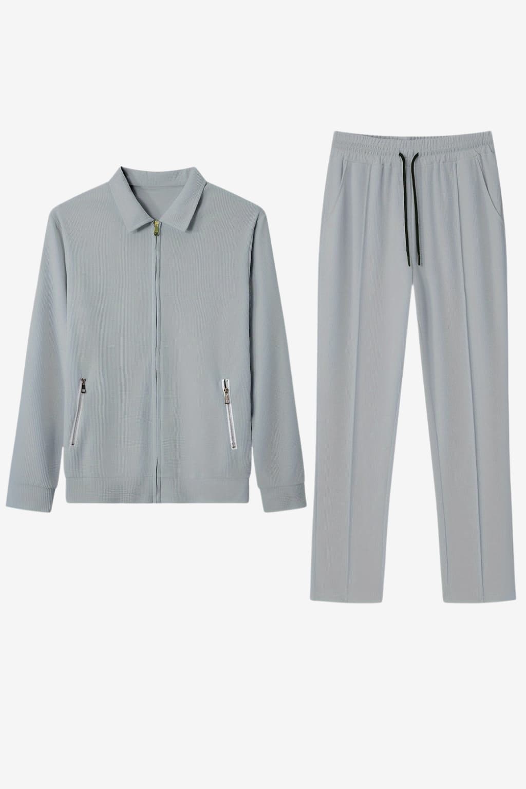 Men's Plain 2-Piece Tracksuit - Breathable Jacket & Drawstring Trousers