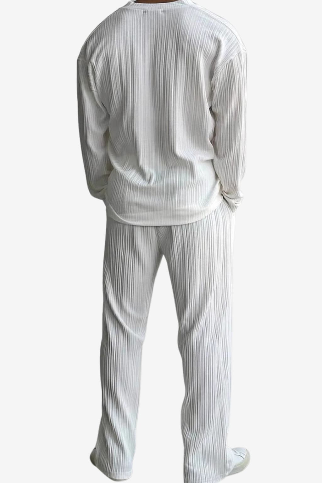 Men's Pleated Lounge Set - Long Sleeve Shirt &Elastic Waist Trousers