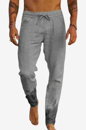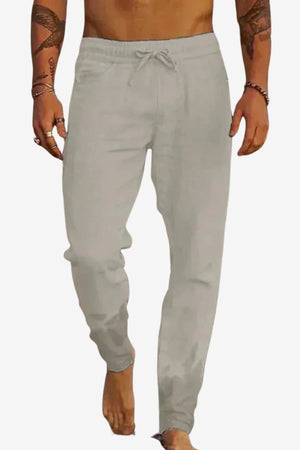 Men's Relaxed Fit Linen Trousers Light Blue Summer Casual