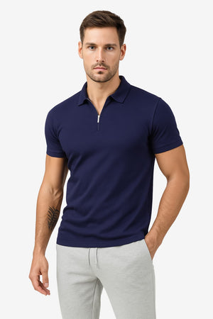 Men's Short-Sleeve Navy Polo Shirt with Zip Collar