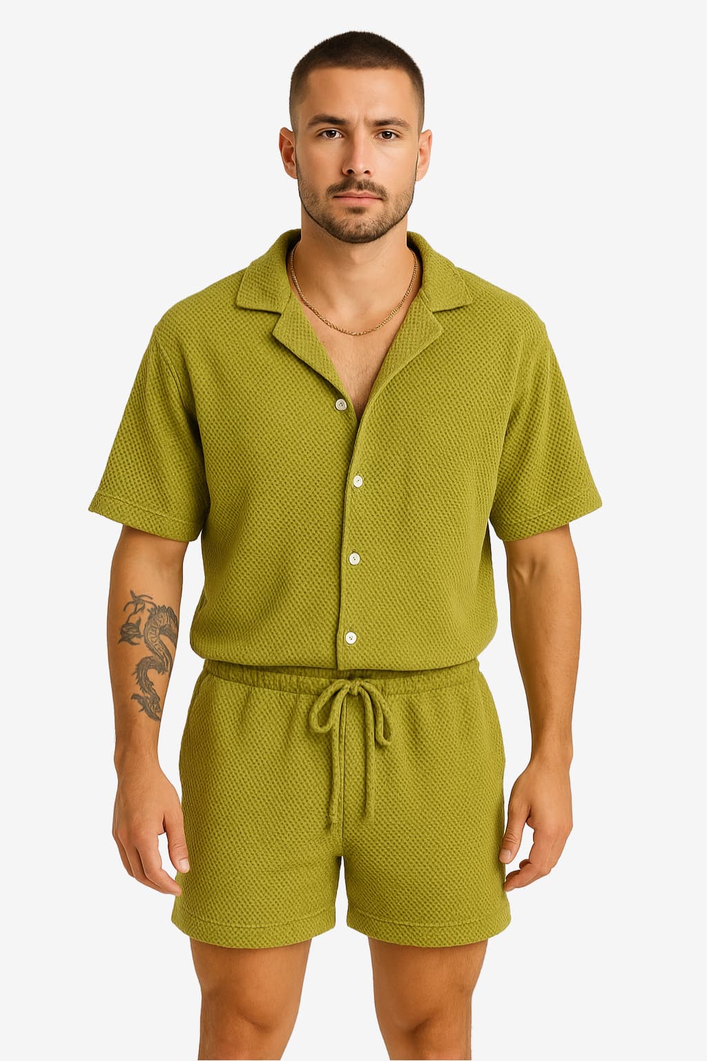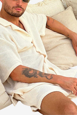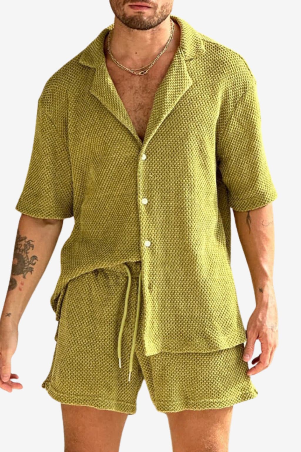 Men’s Short Sleeve Shirt & Shorts Set Textured Casual
