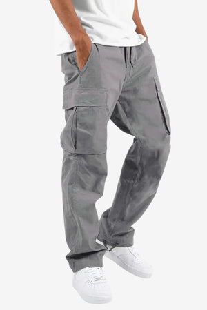 Men's Wide-Fit Cargo Trousers are full-length casual pants with a relaxed silhouette. Designed with a soft, sturdy texture, they feature multiple pockets and an adjustable waistband, ideal for daily activities requiring practicality and ease of movement.- Relaxed Fit: Wide-leg shape accommodates various body types.