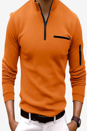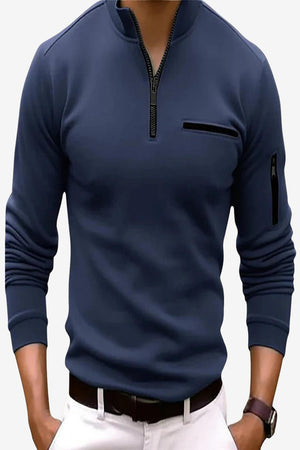 Men’s Zip Up Sweater with Chest Pocket Long Sleeve