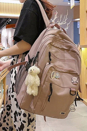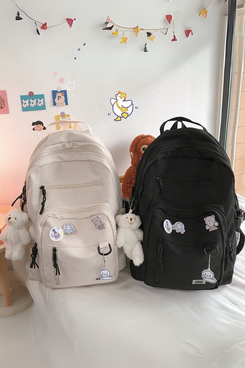 This Unisex Large School Backpack offers multiple compartments for school, college, or daily activities. Constructed with lightweight material and adjustable straps, it provides a functional fit for various users. Decorative pins and a keychain are included for customization.- Adjustable Straps: Shoulder straps with padding adjust for a secure fit.