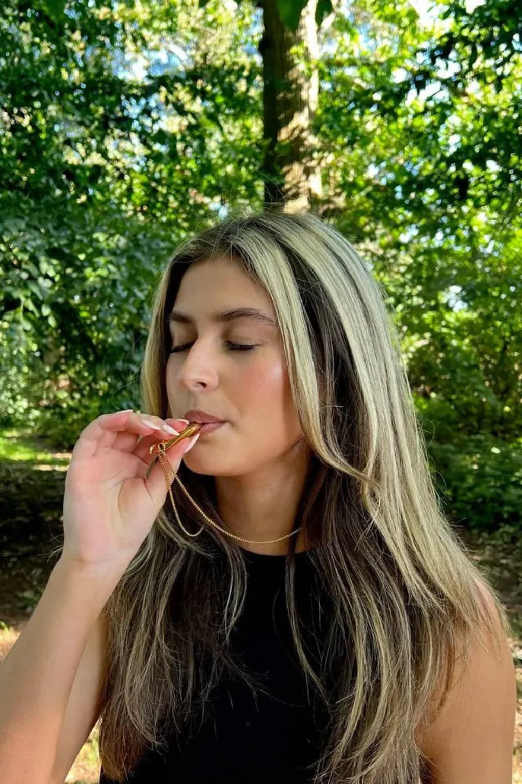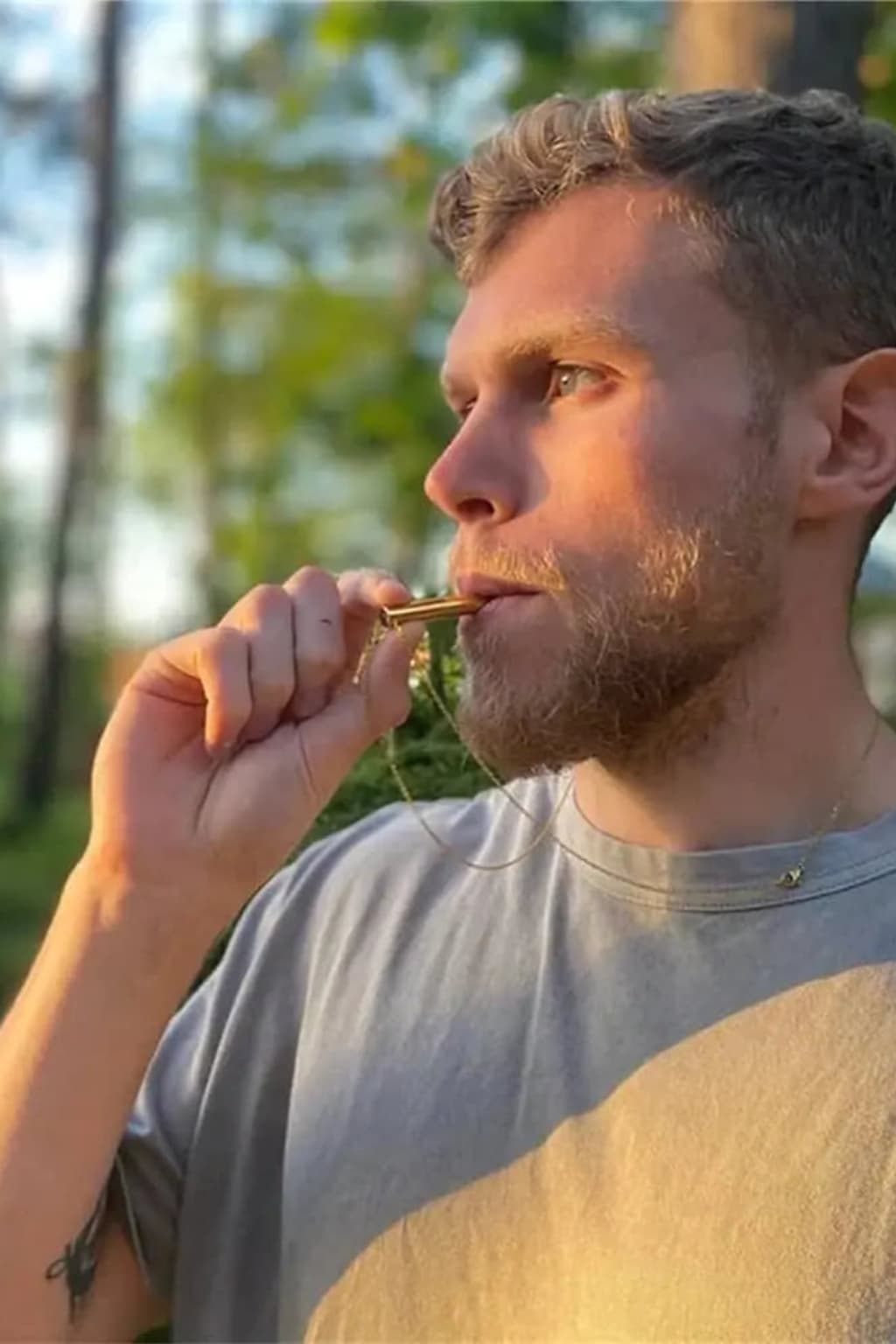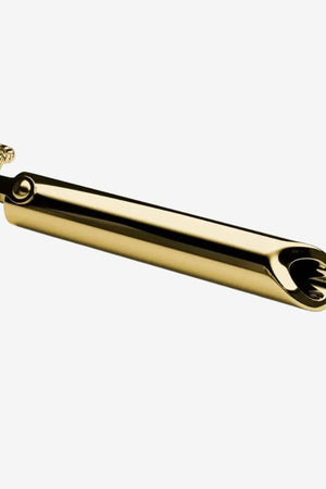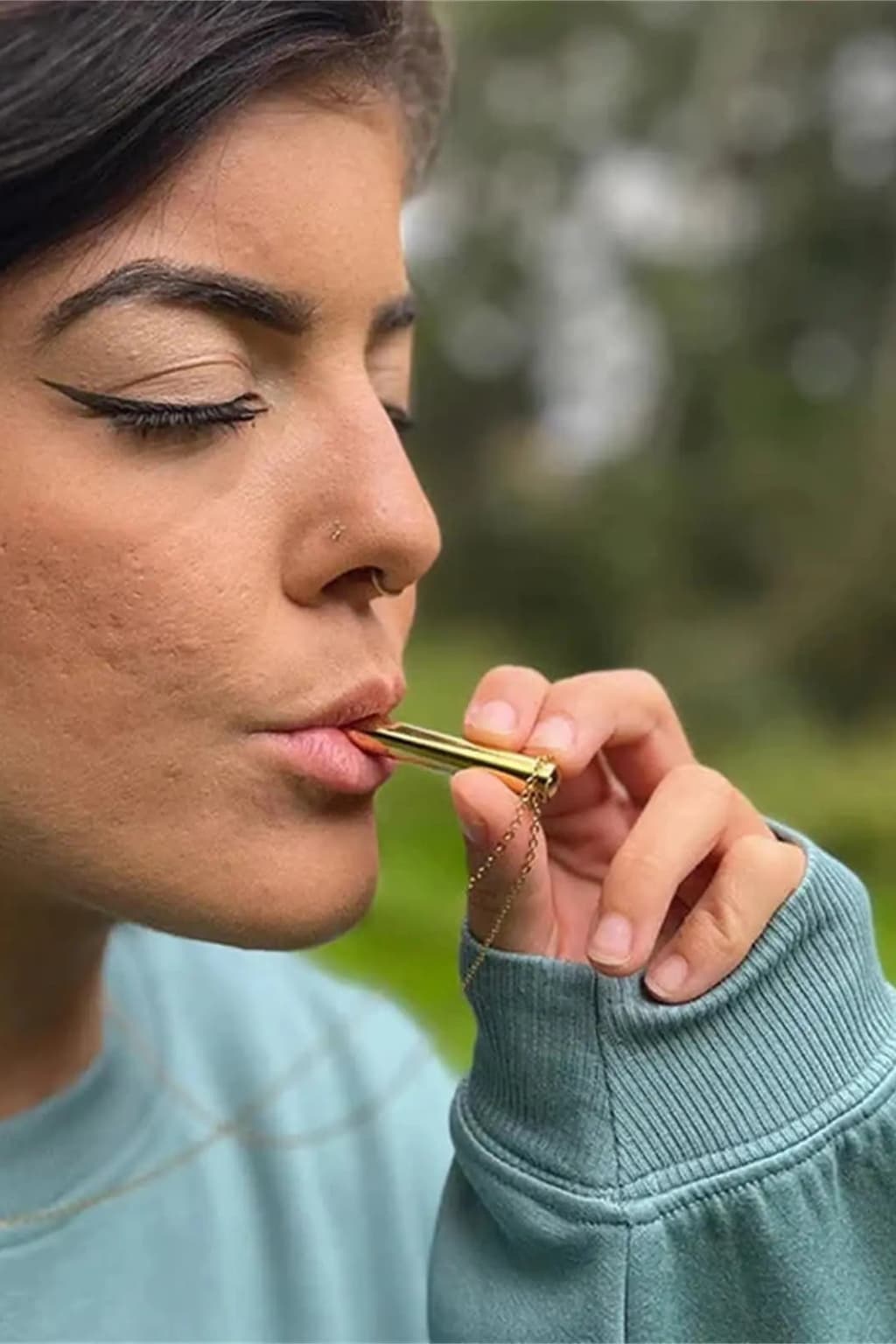 This unisex necklace features a cylindrical pendant suspended from a smooth-link chain. The design maintains a neutral shape with a polished metallic surface. Built for general wear, the construction is lightweight with adjustable sizing to suit different fits and styling needs.- Cylindrical pendant shape: Rounded metal form with a smooth surface and hollow detail along the edge.