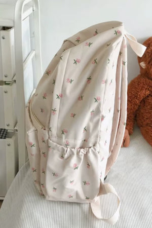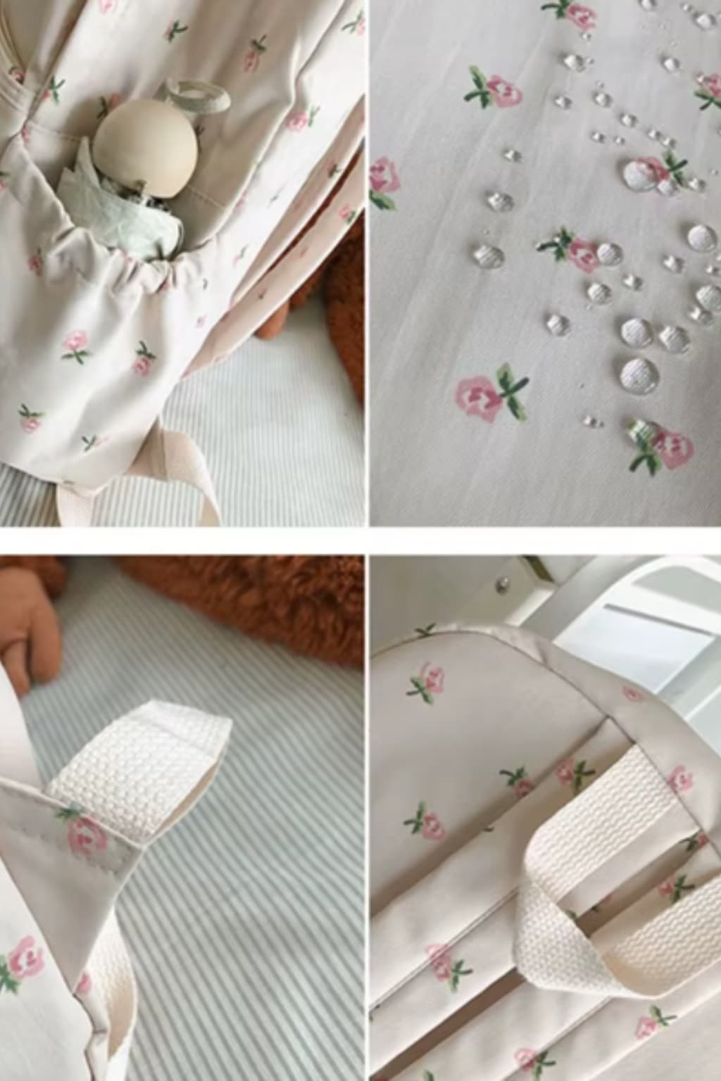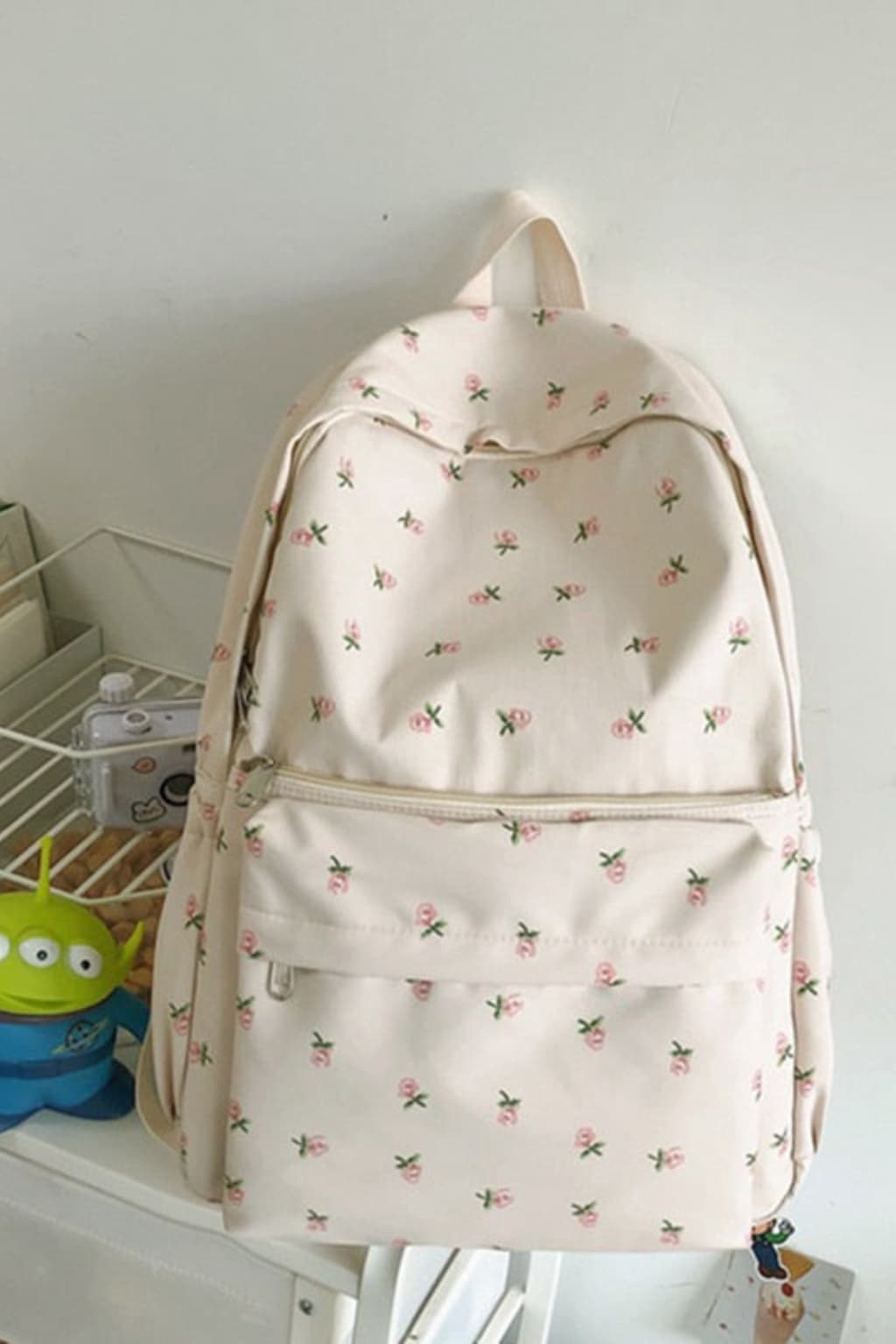 This unisex school backpack with a floral pattern is designed for school, college, or daily use. Its water-resistant fabric and subtle floral print offer a functional and visually appealing option for carrying essentials with adjustable straps and multiple compartments.- Adjustable Straps: Shoulder straps adjust to fit various body sizes.