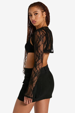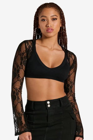 Women’s Black Lace Bolero Shrug Long Sleeve Cropped