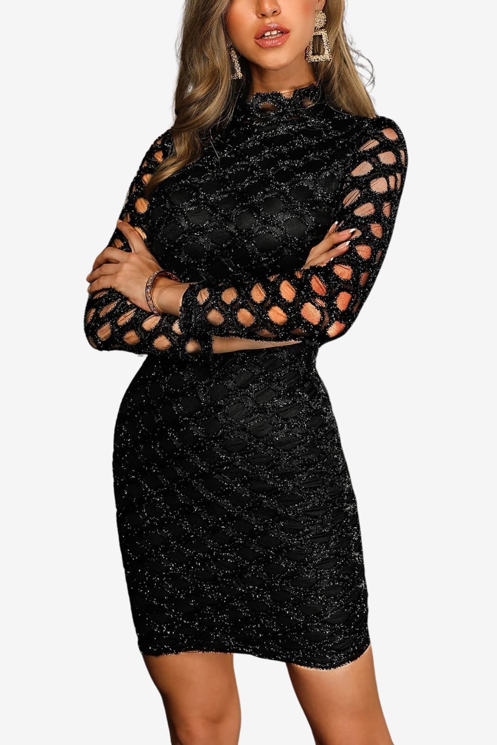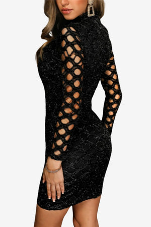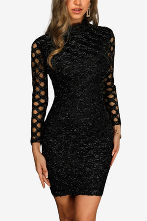 Women's Black Lace Long Sleeve Mini Evening Dress
