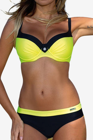 Women's Black Turquoise Striped Underwire Bikini Set