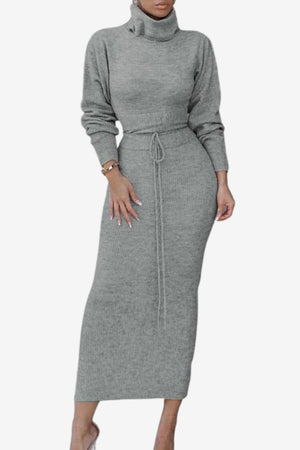 Women's Bodycon Turtle Neck Sweater & Drawstring Skirt Co-ord Set