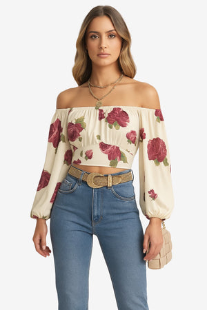 This women's off-shoulder blouse features a loose silhouette with adjusted design elements suitable for everyday or casual layering. Developed for those seeking light coverage with a gently shaped structure, the blouse offers a fluid outline with a neutral surface texture. Its adjustable components and non-restrictive shape provide a fit adaptable to varied body types and environments.- Off-shoulder neckline: Creates an open neckline with a stable edge around the shoulders for an unstructured upper profile.