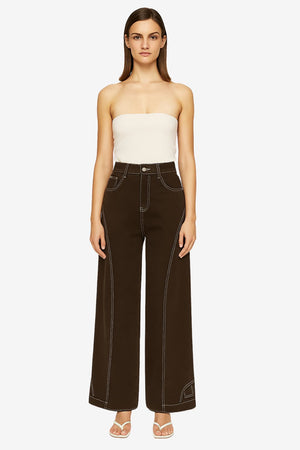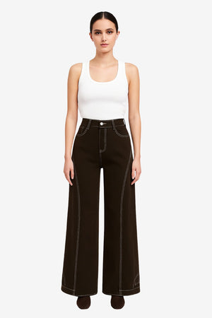 Women's Brown High-Waist Wide-Leg Denim Jeans