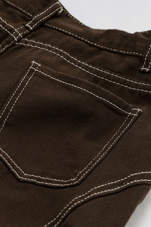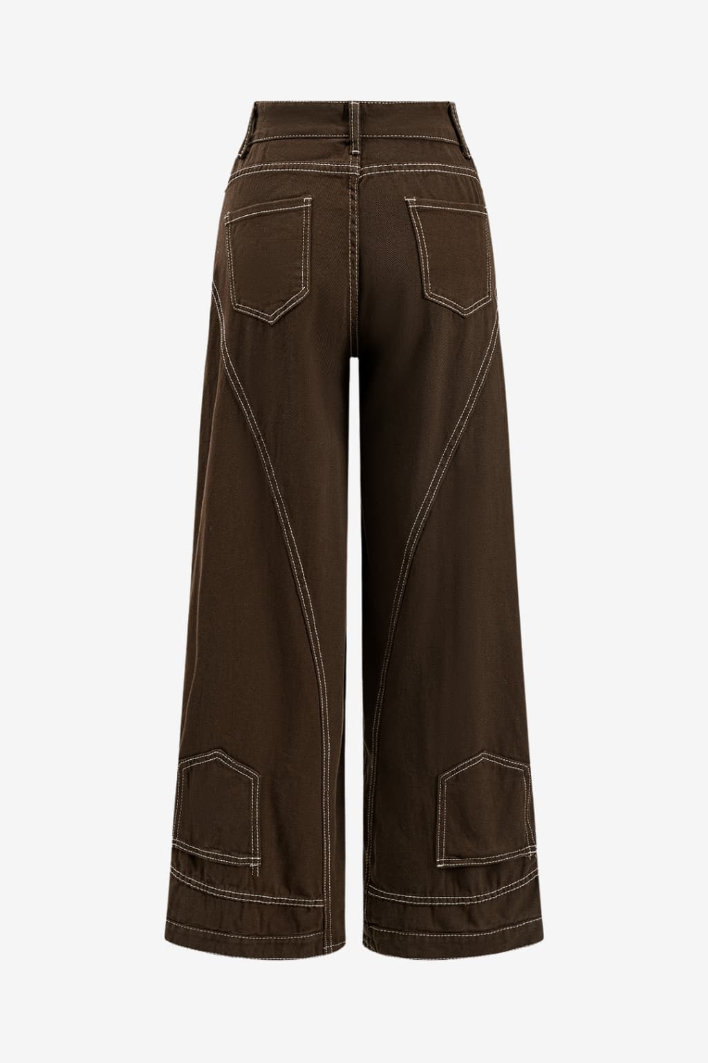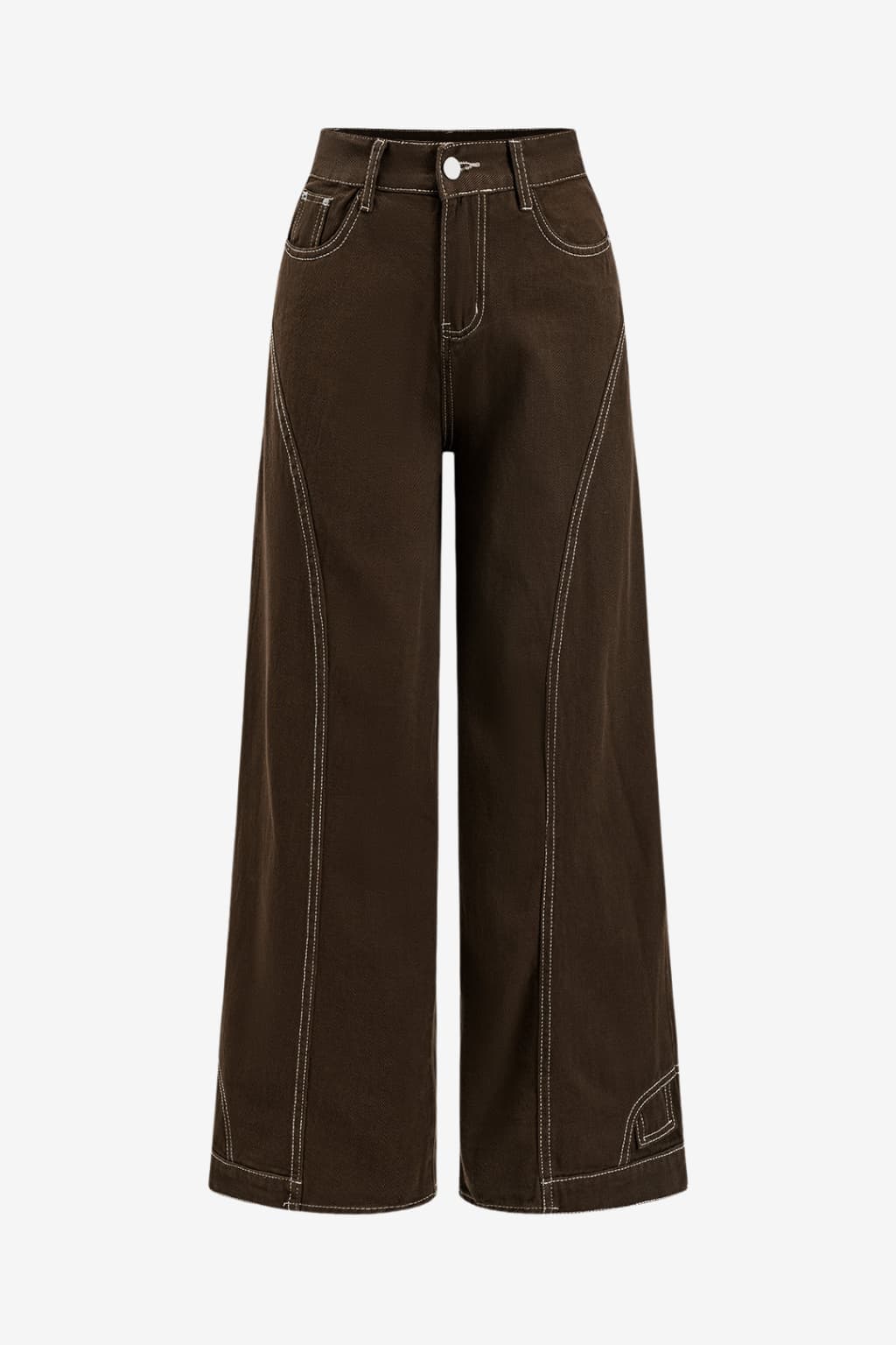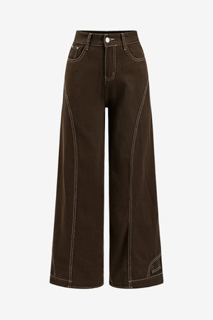 The Women's Brown High-Waist Wide-Leg Denim Jeans feature a loose-fit design made from non-sheer denim. Their brown tone and panel detailing create a distinct appearance suitable for women seeking a relaxed, everyday style.- Wide-Leg Fit: Loose silhouette designed to suit various body types.