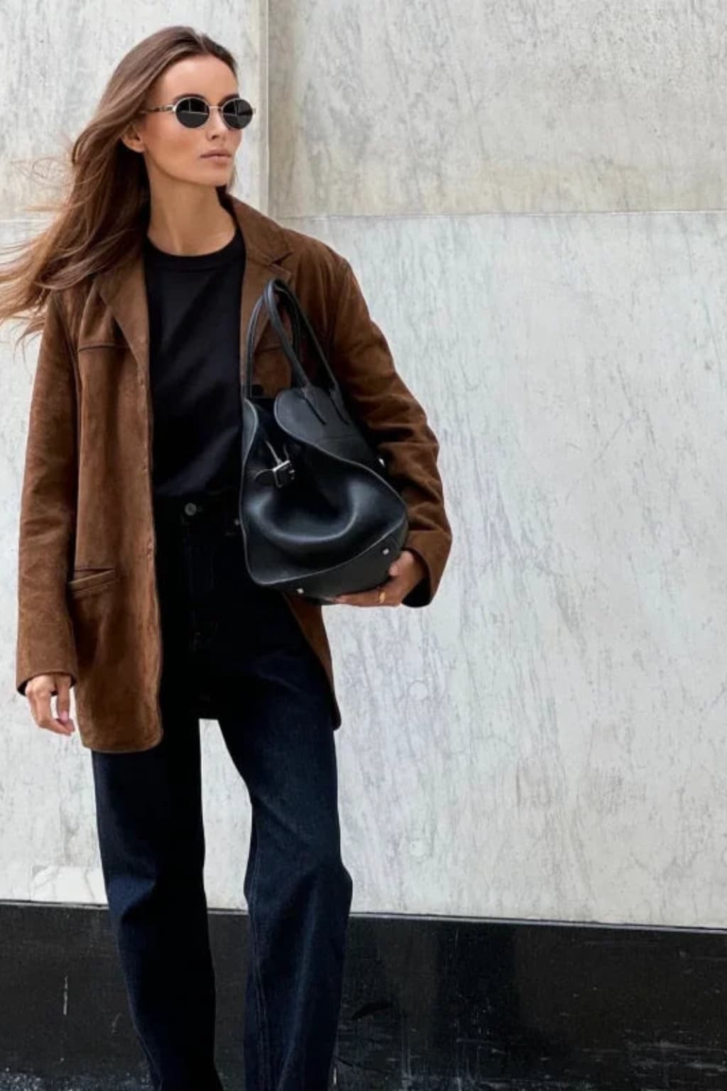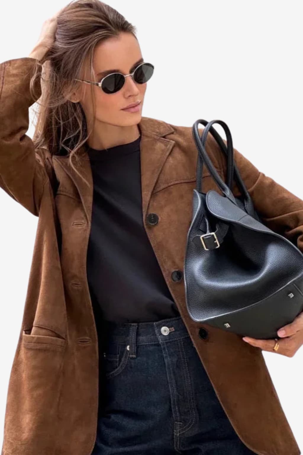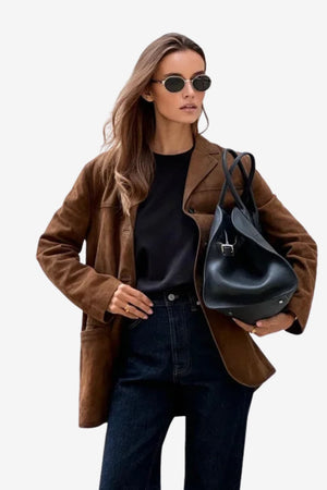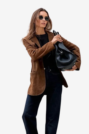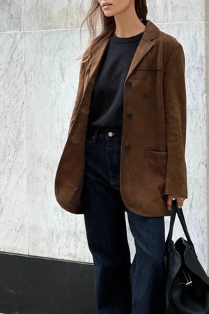 Women’s Brown Suede Blazer - Lapel Collar Smart Casual Jacket