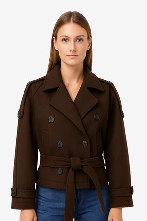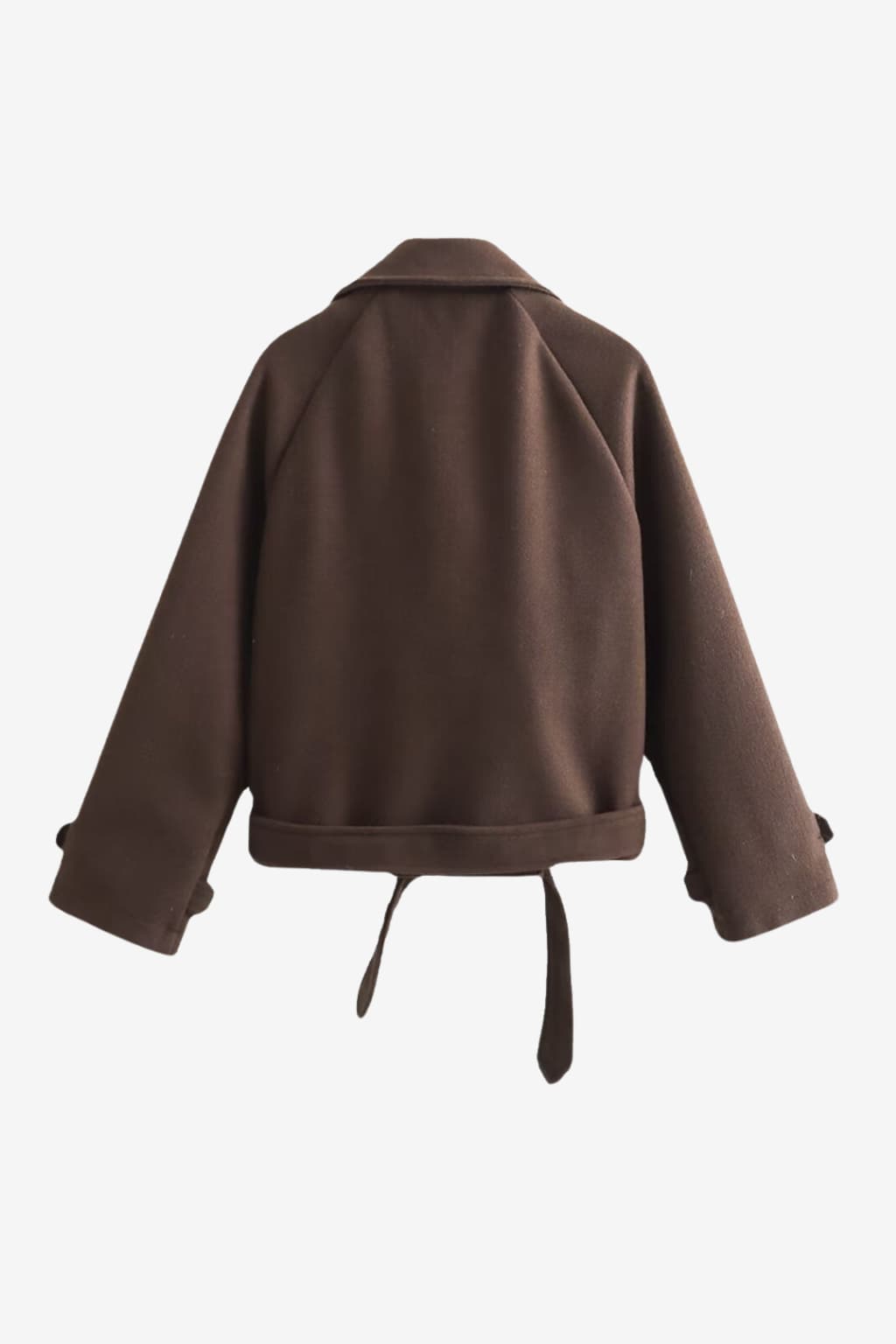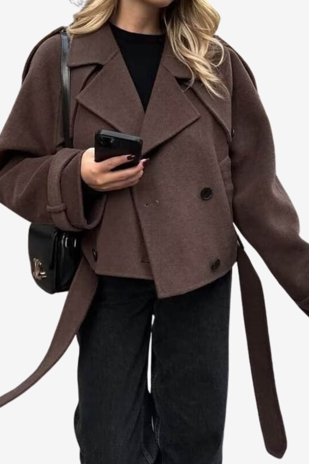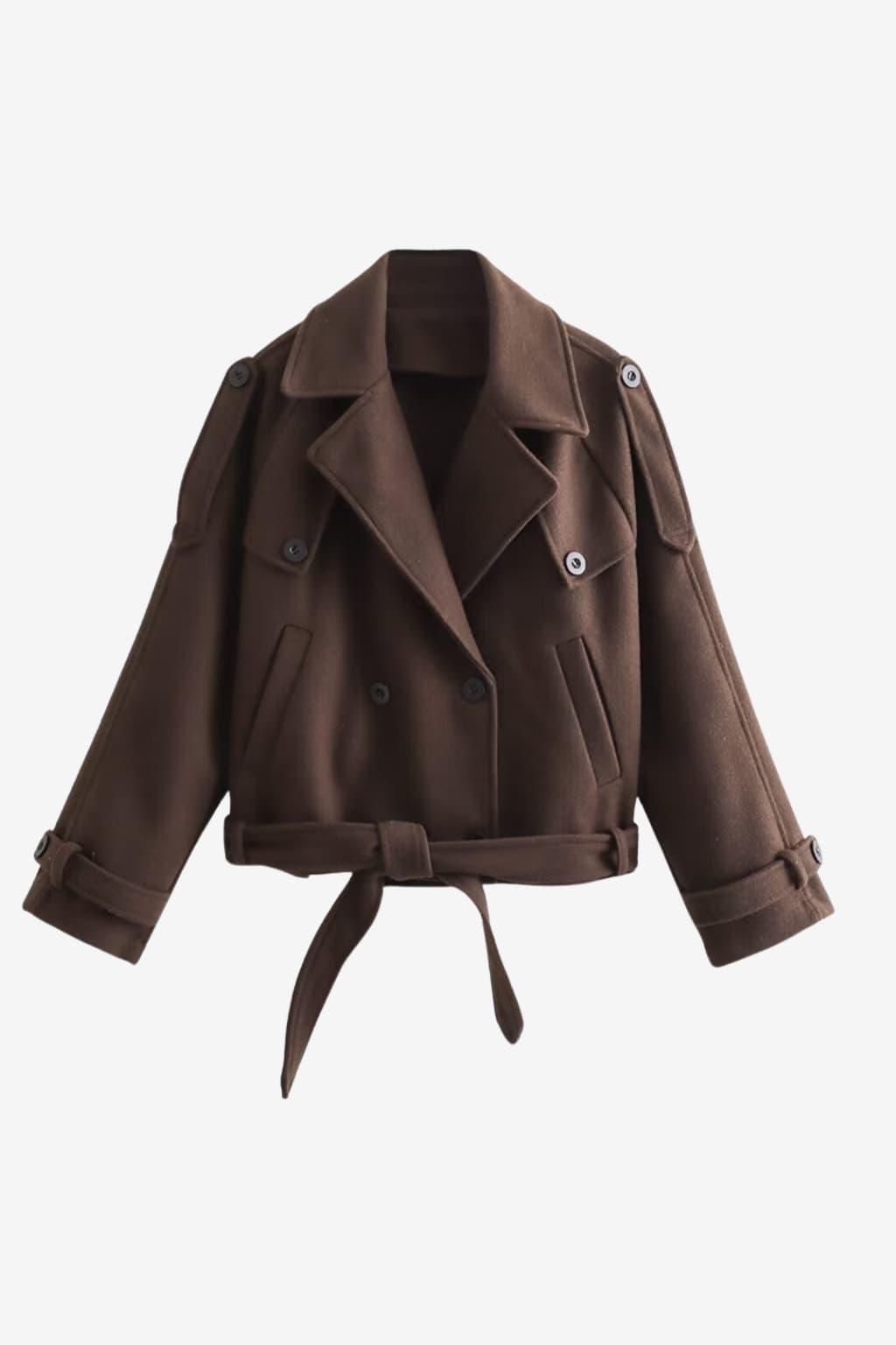 Women’s Brown Wool Blend Coat with Belt and Lapels
