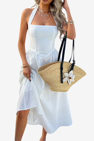 Women's Cotton Linen Halter Midi Dress - Sleeveless A-Line Fit for Summer