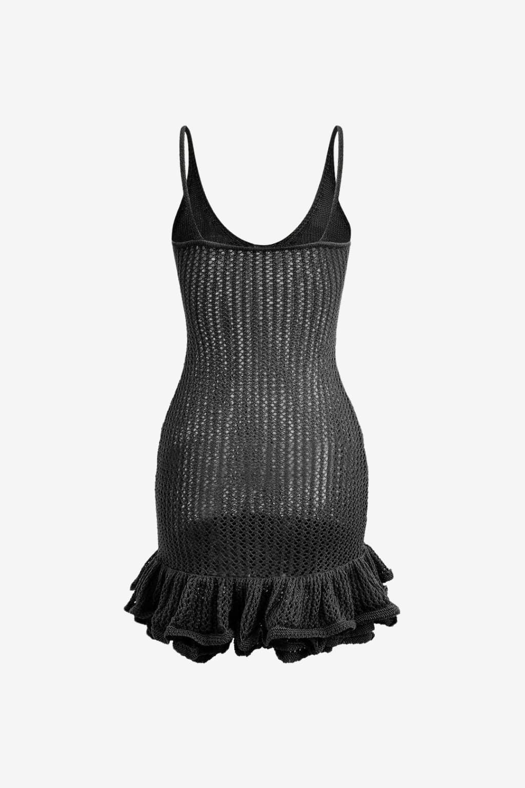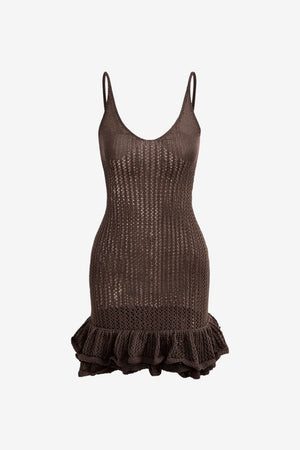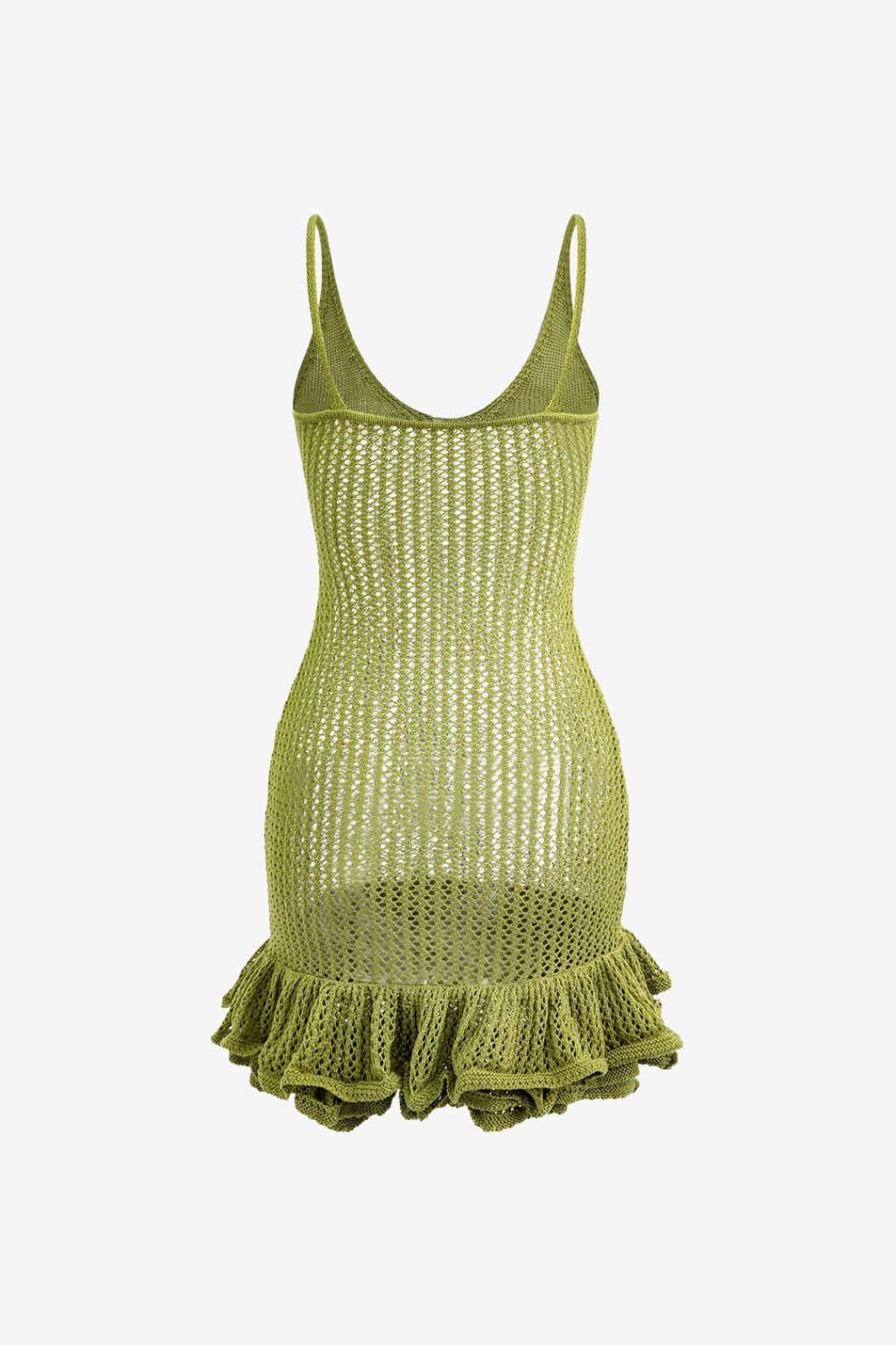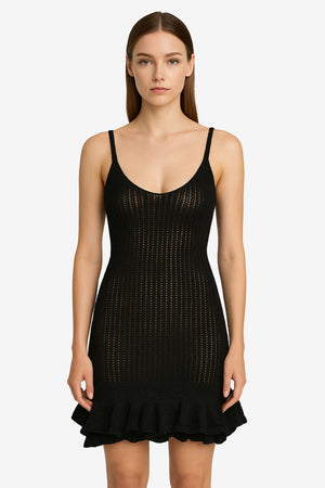Women's Crochet Mini Dress V-Neck Ruffle Hem Slim Fit