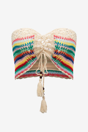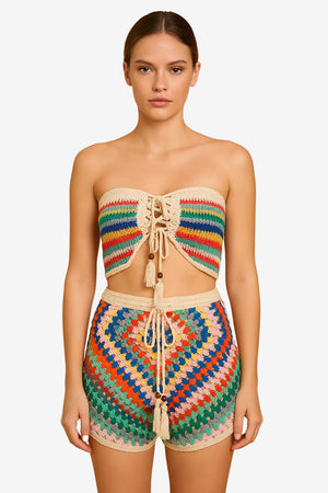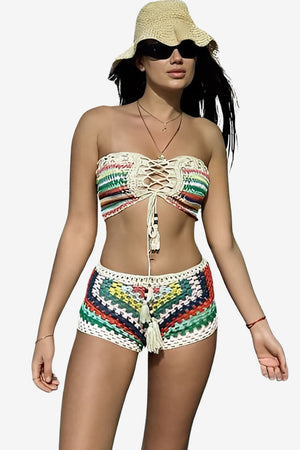 Women's Crochet Two-Piece Set Khaki Bandeau Top and Shorts