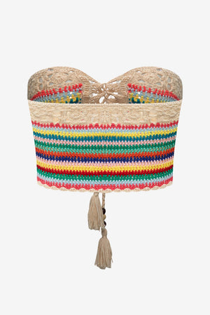 This Women’s Crochet Two-Piece Set includes a khaki bandeau top and high-waisted shorts. The semi-sheer, non-stretch knit features a striped pattern, suitable for warm weather. Designed for women, the fitted ensemble offers a structured silhouette for casual wear during summer outings or travel.- Adjustable Closure: Lace-up front on bandeau, drawstring on shorts for fit.