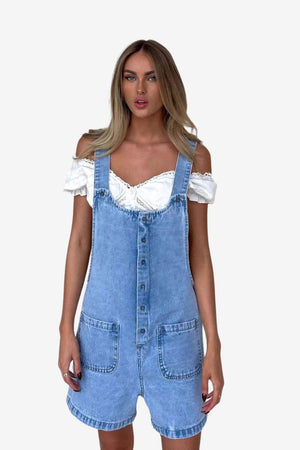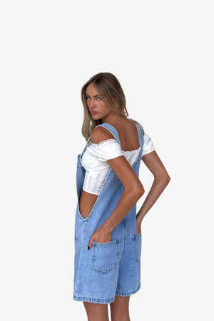 Women's Denim Dungaree Shorts - Loose Fit, Adjustable Straps