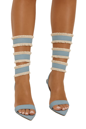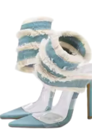 Women’s Denim Lace-Up High Heel Sandals Pointed Toe