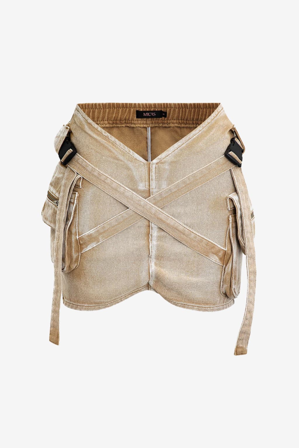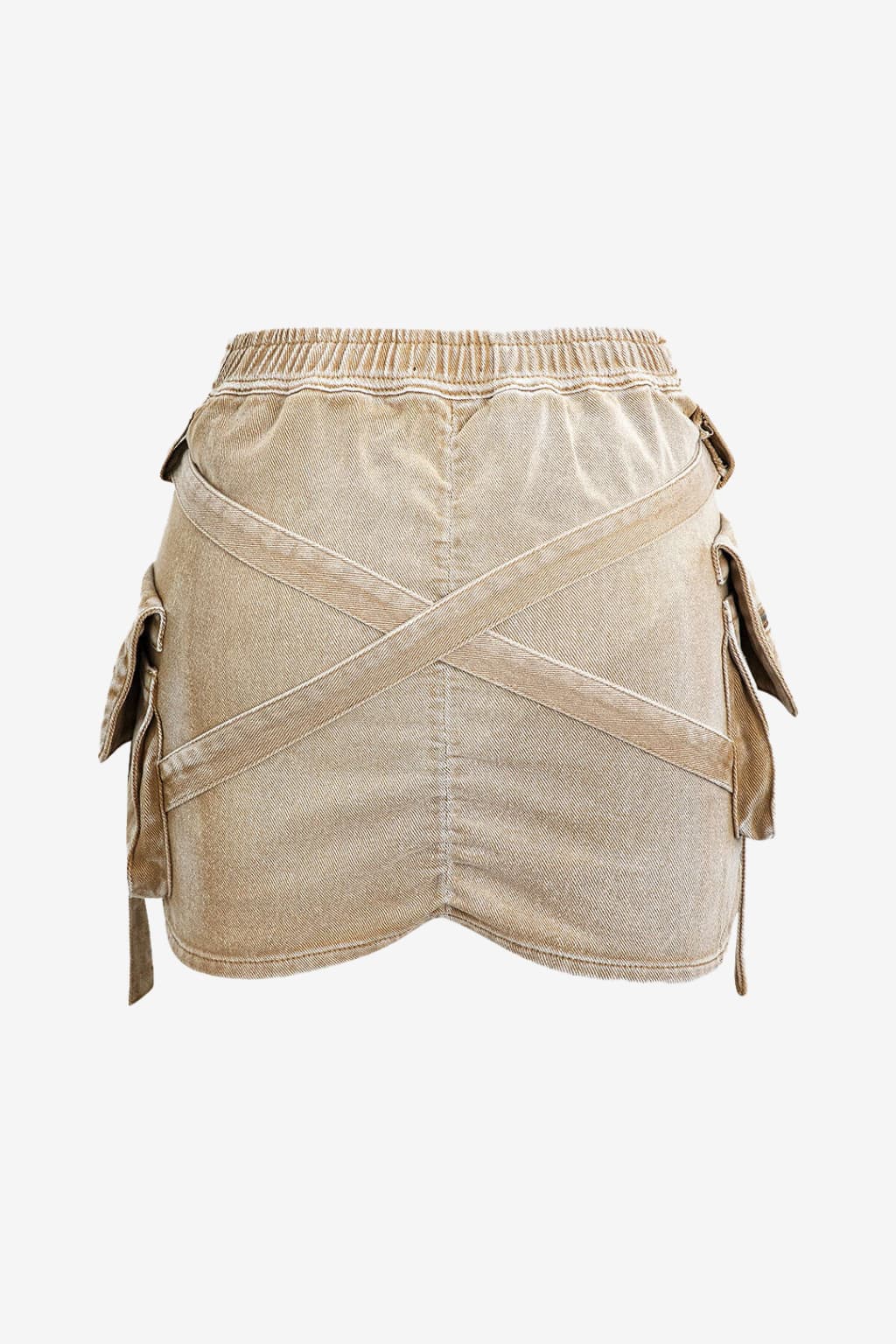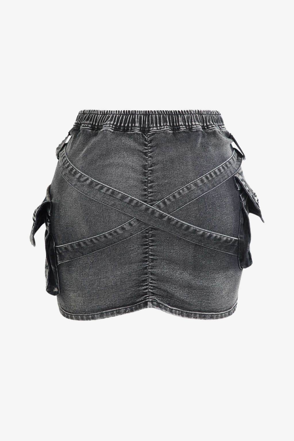 Women's Denim Mini Skirt V-Waist Buckle Flap Pocket Slim Fit
