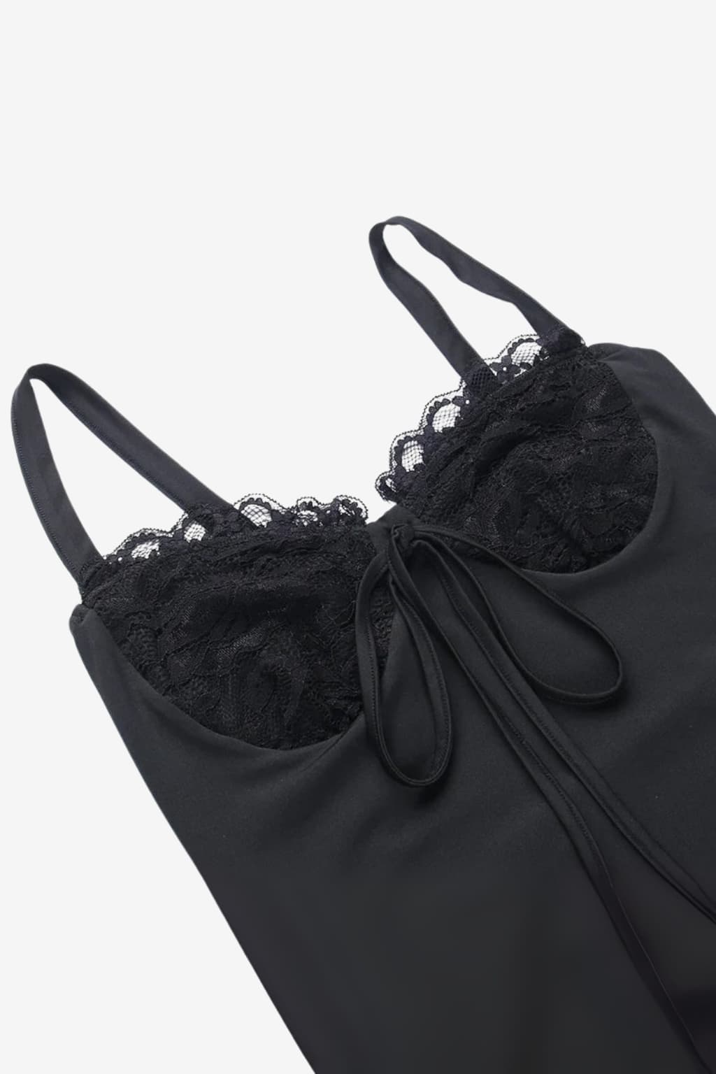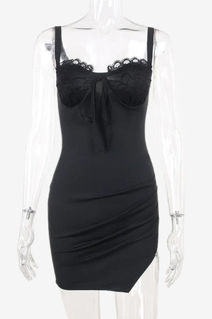 Women's Fitted Mini Dress with Lace Trim and Spaghetti Straps