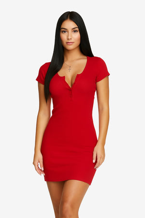 The Women's Fitted Short Sleeve Polo Mini Dress features a bodycon silhouette with a ribbed knit structure. Its stretchy fabric and tailored design suit various body shapes for casual or semi-formal settings, offering a versatile addition to any wardrobe.- Tailored Fit: Bodycon silhouette with stretch for a fitted appearance.
