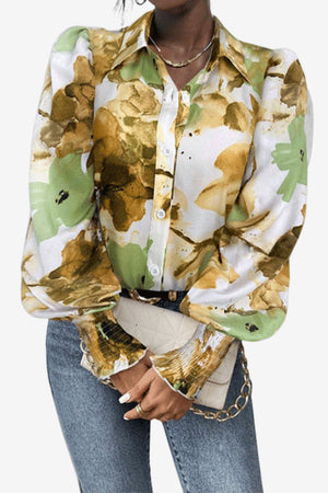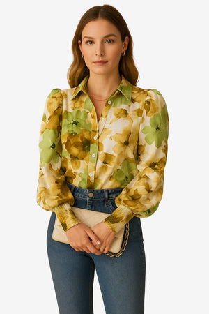 Women’s Floral Button Shirt Puff Sleeve Oversized Fit
