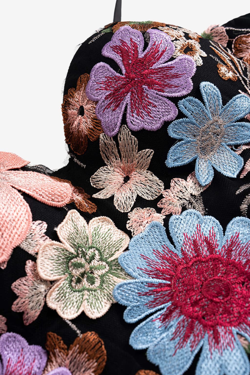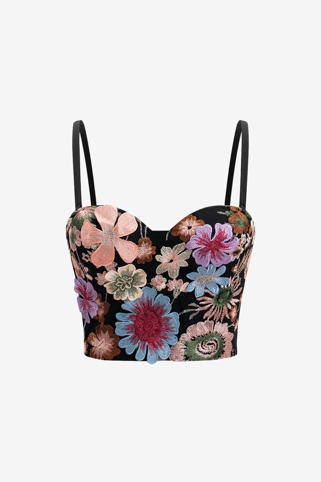 This Women's Floral Embroidered Slim Cami Crop Top is a sleeveless, fitted garment featuring detailed floral embroidery. Its lightweight, stretchy fabric and tailored silhouette suit various settings, offering a decorative style for women seeking a structured, sleeveless top with a curved neckline and thin straps.- Slim Fit: Tailored silhouette with mid-stretch fabric fits multiple body types.