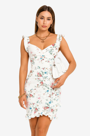 Women’s Floral Mini Dress with Ruffle Straps & Hem
