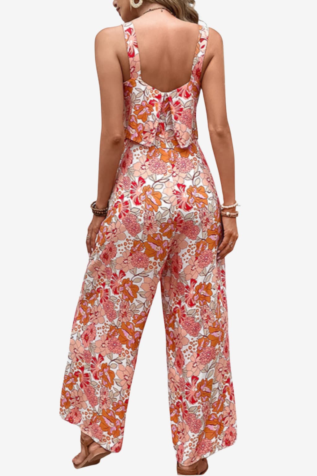 Women’s Floral Sleeveless Jumpsuit Wide Leg Summer Set