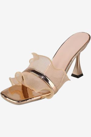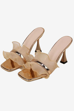 Women's Gold Lace Strap Square Toe Mid Heel Sandals