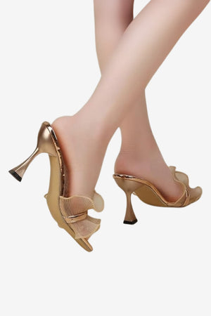 - Lightweight Upper: Sheer, ruffled strap with metallic accent for delicate look.